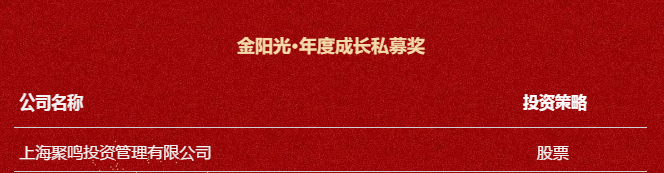 此次评选中,聚鸣投资荣获“金阳光·年度成长私募奖”